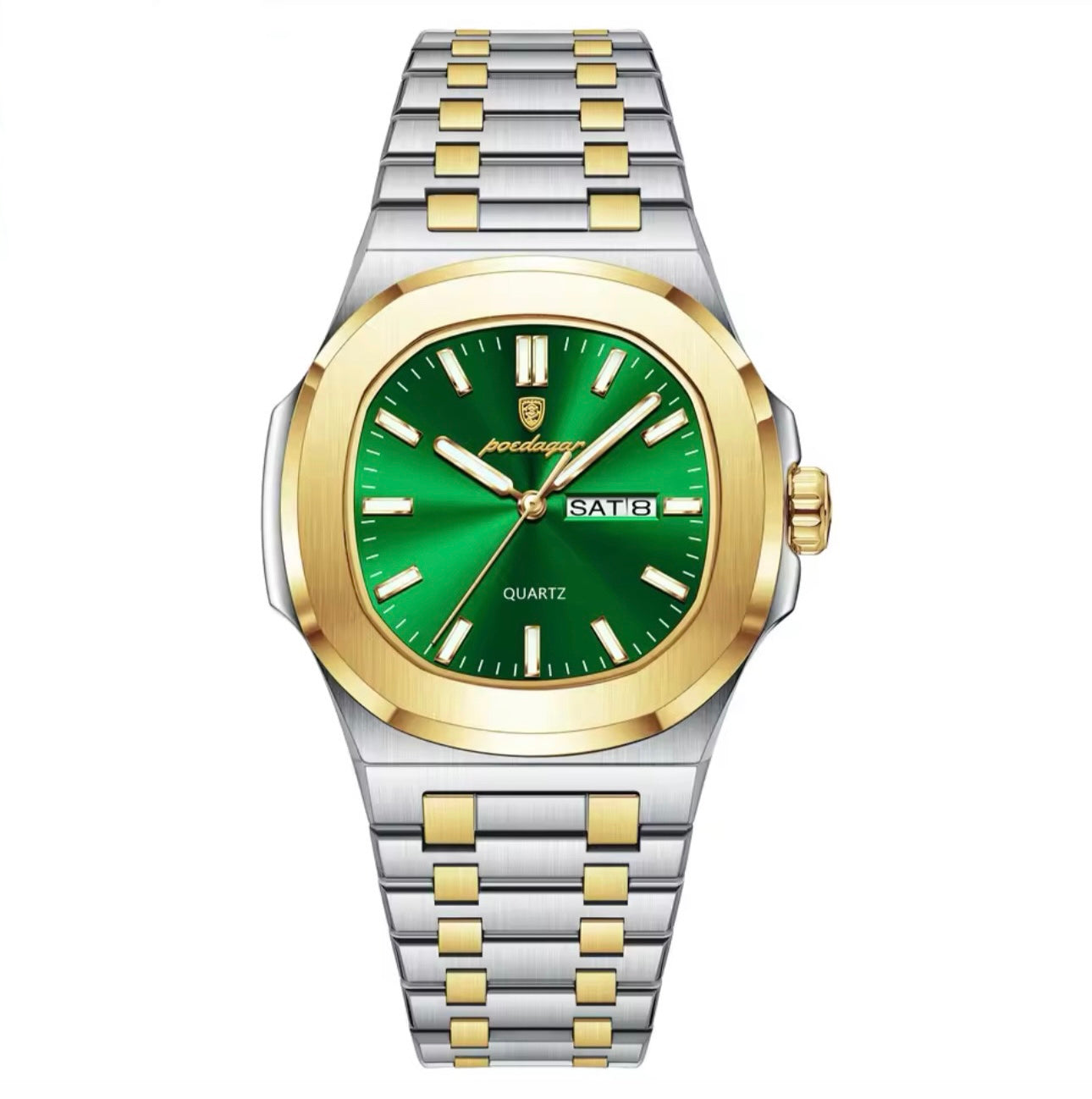 בצבע כסוף ירוק וזהב , פנים השעון בגוון ירוק
