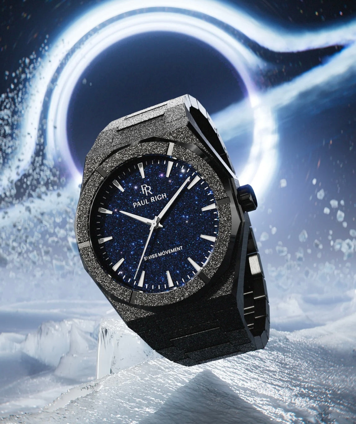 בצבע שחור מנצנץ , פנים השעון בגוון כחול ספיר