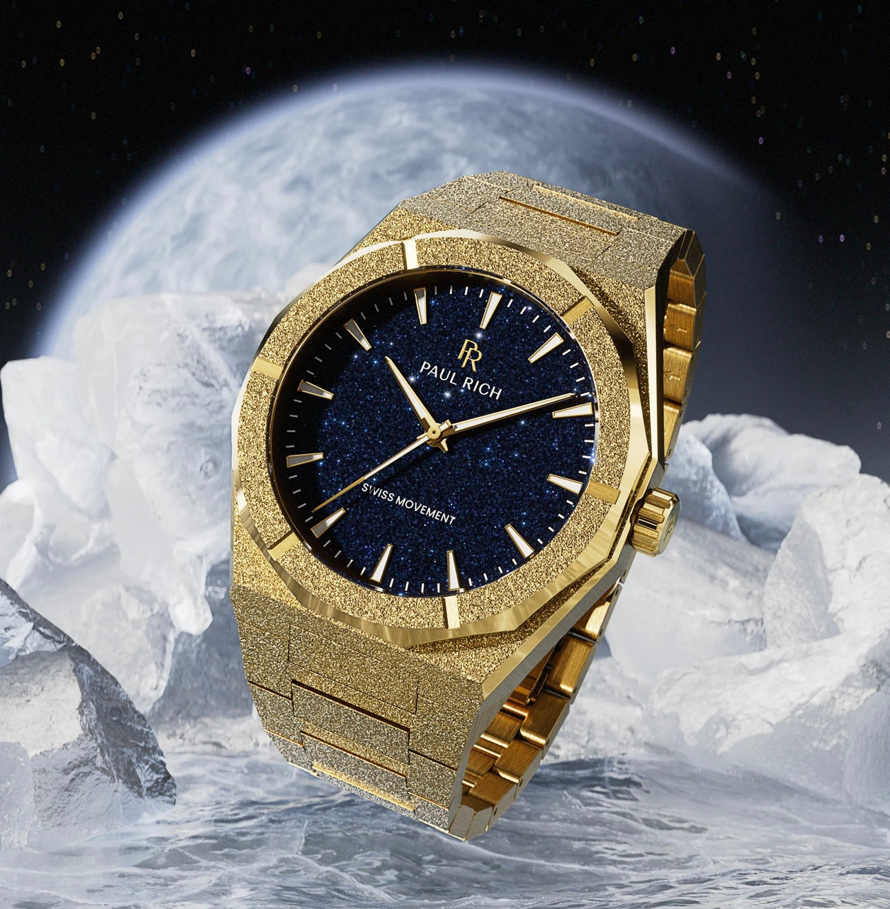 בצבע זהב מנצנץ , פנים השעון בגוון כחול ספיר