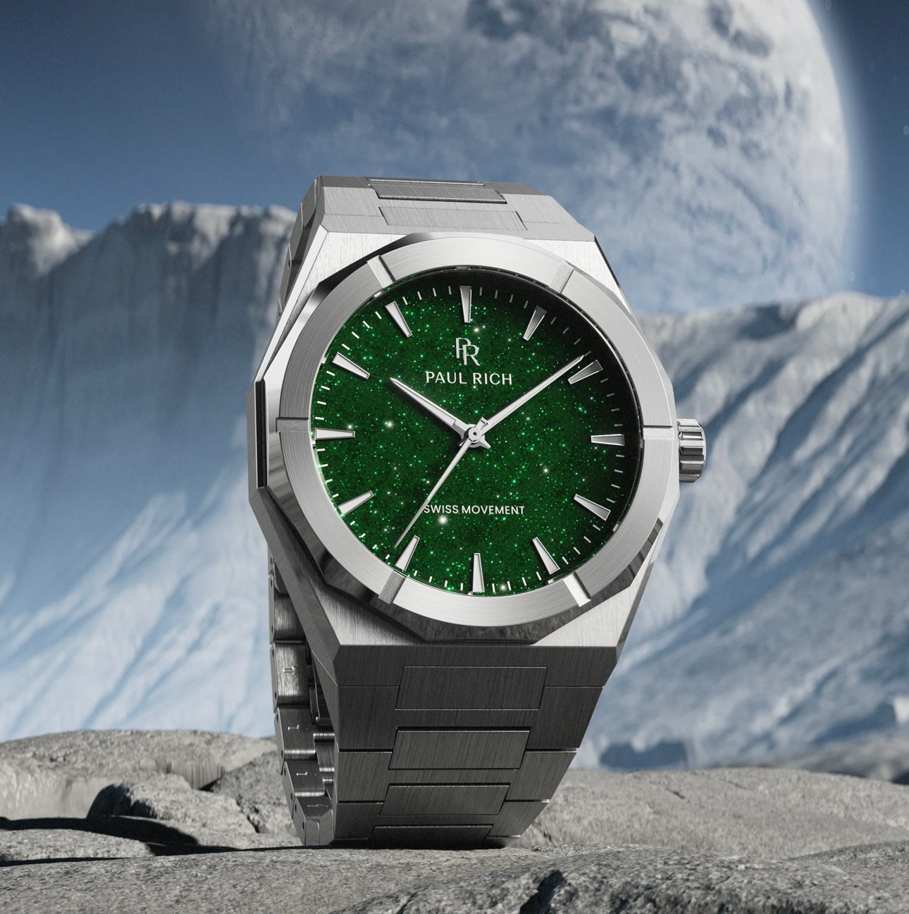בצבע כסוף , פנים השעון בגוון ירוק ג׳ייד