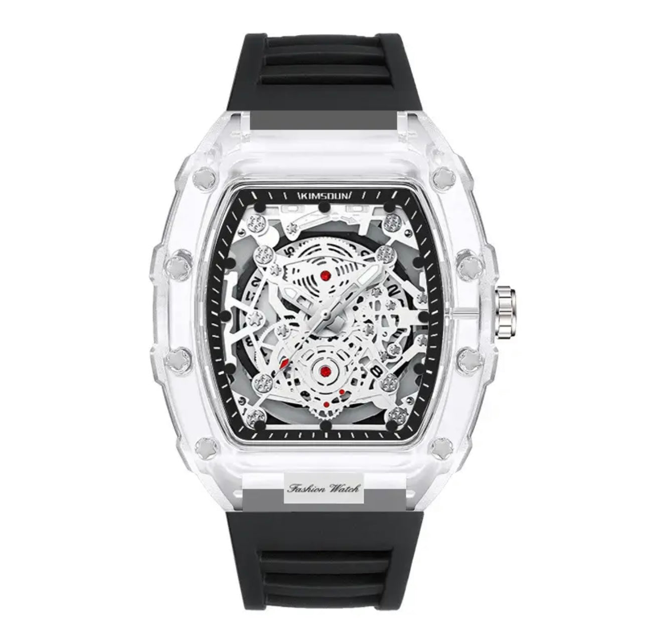 בצבע שחור שקוף  , פנים השעון בגוון סילבר